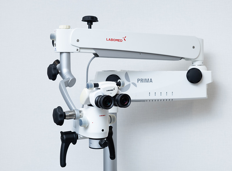 治療の精度を高めるために歯科用マイクロスコープ(顕微鏡)を導入しています。肉眼では見えにくい歯の細かな構造を最大20倍まで拡大して確認できるため、特に根管治療や虫歯の除去など、繊細な処置において精密かつ確実な治療を実現します。