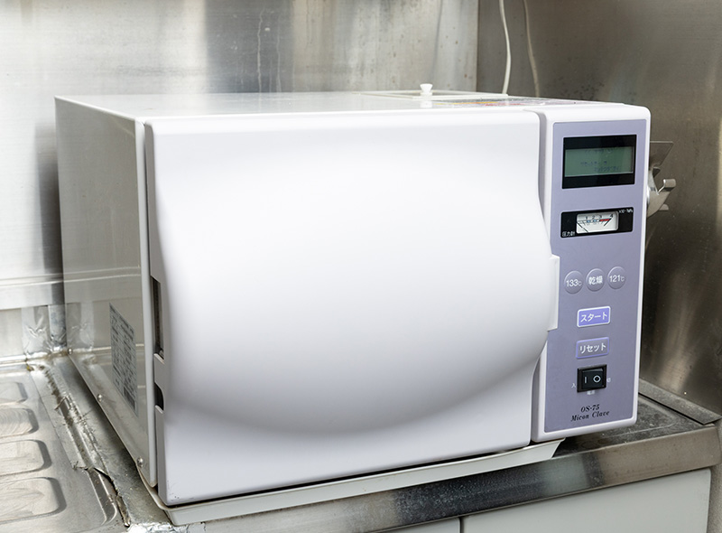 世界的な滅菌基準である「クラスB」に対応した高性能オートクレーブLISAを導入し、治療に使用する器具を患者様ごとに徹底して滅菌・管理しています。さらに、ハンドピース専用の滅菌器や洗浄機も活用し、院内感染防止の徹底と、安全で清潔な診療環境の維持に努めています。