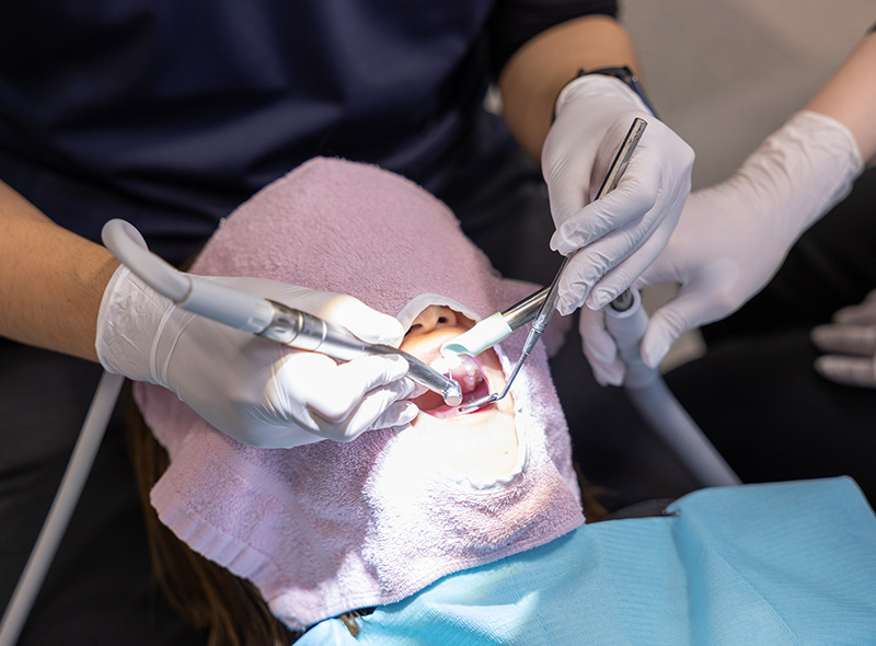虫歯菌に感染した部分を削り、詰め物を詰めていきます。複数のう蝕が認められる場合は被せ物を被せるケースもあります。 -