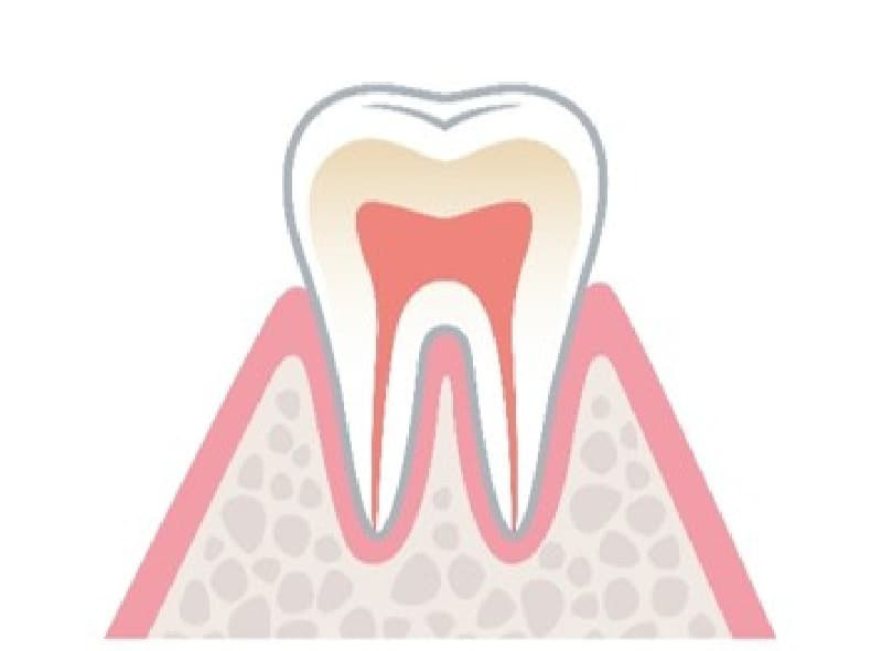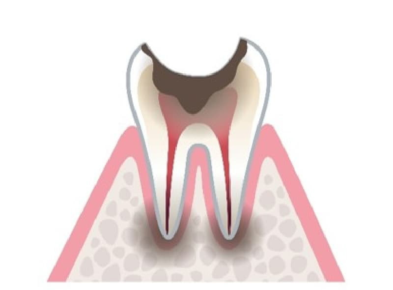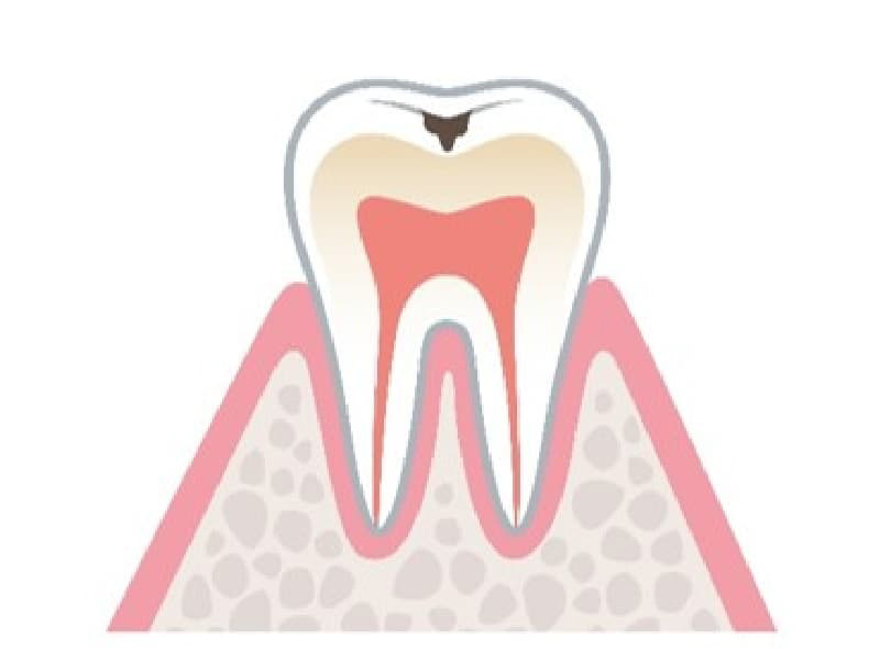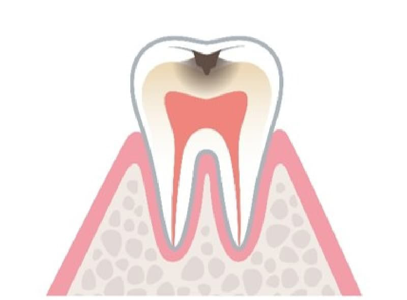虫歯が象牙質まで達している状態です。神経までは達していませんが、知覚過敏の症状が現れてきます。