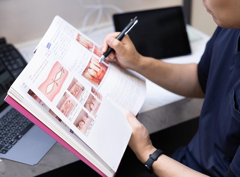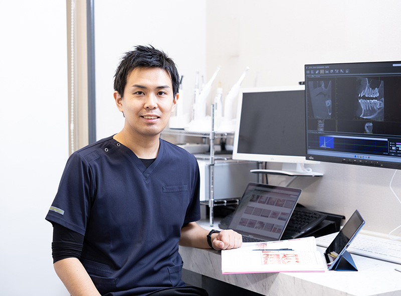 関われる環境当クリニックでは、一般歯科や予防に留まらず、矯正、審美、インプラント・口腔外科・入れ歯まで、幅広い症例に携われます。ひとつの分野に限定されないため、自然と専門知識や技術が養われる環境です。